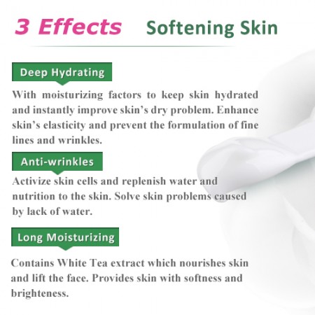 Sodium Hyaluronate --- Provides a strong moisturizing ability. With its Hyaluronic molecules, the skin is able to absorb a rich amount of watermakes the skin soft and supple.