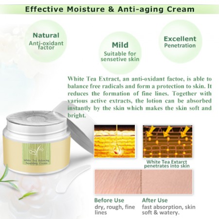 Apply appropriate amount of White Tea Balance Nourishing Cream evenly on skin morning and night. Gently massage until it’s completely absorbed.