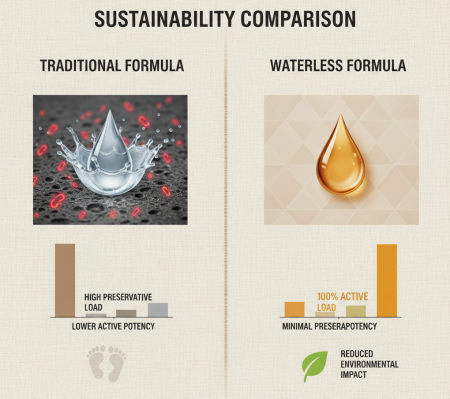 Wasserfreie Formeln sind von Natur aus widerstandsfähiger gegen mikrobielles Wachstum, was eine signifikant reduzierte Konservierungslast ermöglicht (ideal für Clean Beauty-Positionierung und zur Verringerung des ökologischen Fußabdrucks).