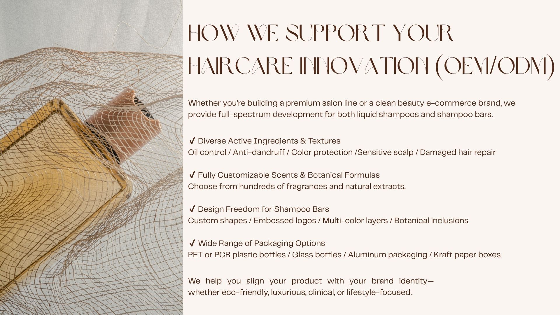 Shampoo bars represent innovation, sustainability, and design flexibility, while liquid shampoo remains the most versatile and widely accepted format. As OEM/ODM partners, we help brands evaluate their target market, positioning, and cost structure to launch products with a clear advantage.