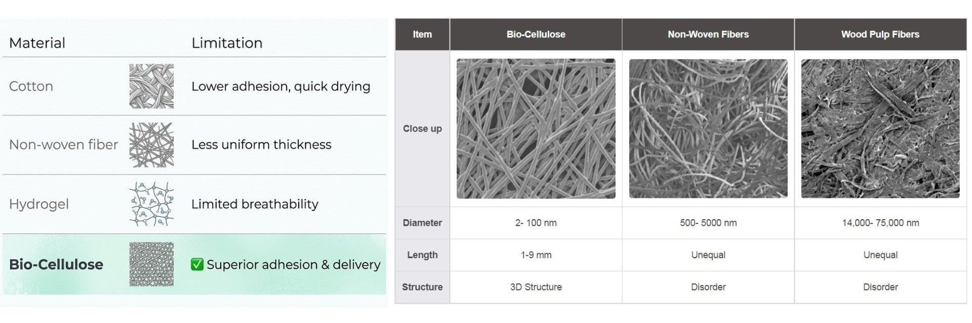 La Bio-Celulosa se destaca como el material de nueva generación, ofreciendo una adhesión a la piel inigualable, retención de humedad y eficiencia en la entrega transdérmica.