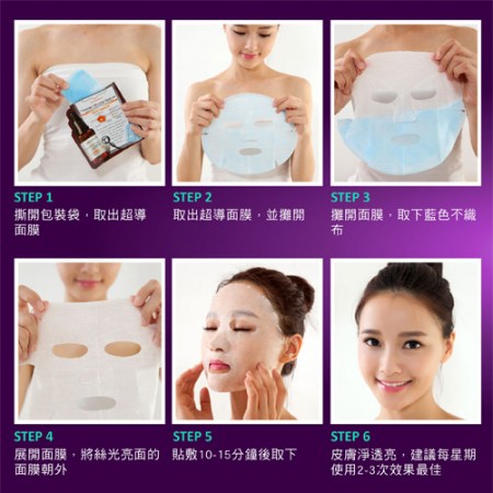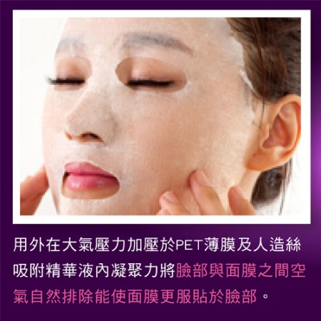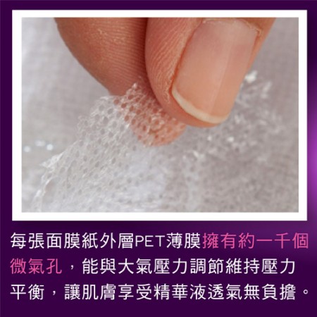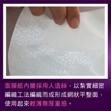 - 3.3D人工シルク構造 ▶▶ 人工シルク素材を使用し、独特の3D立体構造を持ち、繊維がエッセンスを完全に吸着し、肌に適切に放出します。