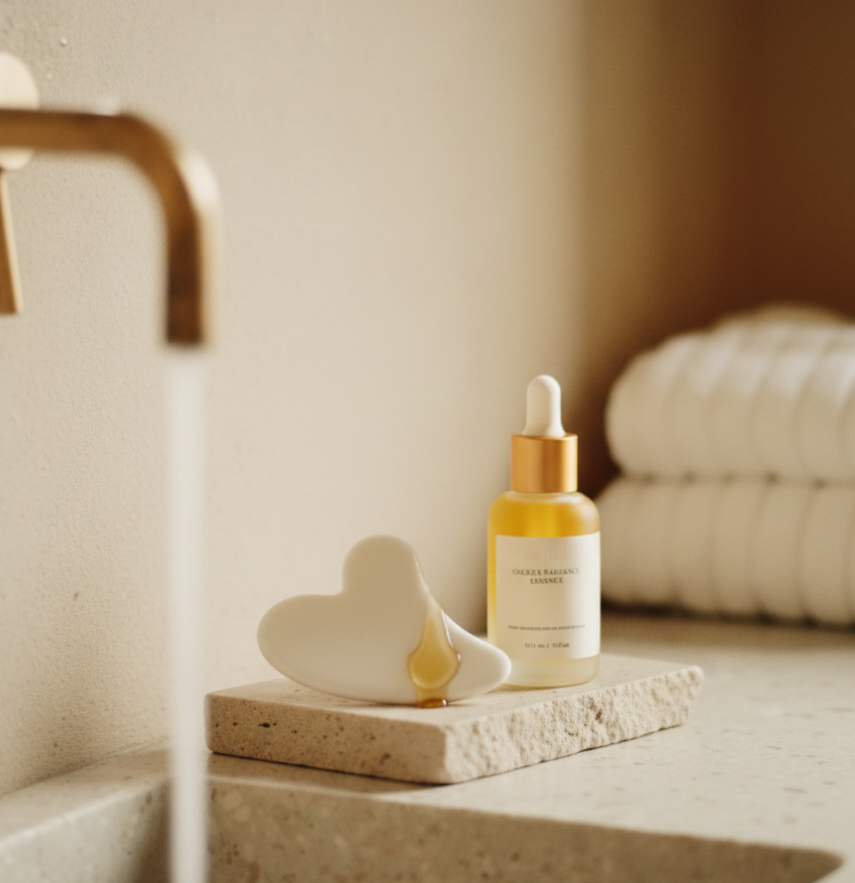 Gua Sha wajah profesional adalah protokol yang tepat, bukan hanya gerakan secara rawak. Ia bermula dengan "Membuka Titik"—mengaktifkan nod limfa di belakang telinga dan sepanjang leher untuk membersihkan laluan. Teknik ini kemudian mengikuti prinsip pengangkatan "Bawah ke atas, Dalam ke luar" yang ketat untuk menentang graviti. Namun, tabu yang paling utama adalah "Penggelinciran Kering." Tanpa medium yang sesuai, geseran boleh menyebabkan mikro-trauma dan garis halus yang pramatang. Sesi Gua Sha yang benar-benar berkesan memerlukan serum atau minyak berprestasi tinggi untuk bertindak sebagai pelincir, memastikan bahan aktif disampaikan ke dalam kulit dengan mendalam sambil melindungi permukaan.