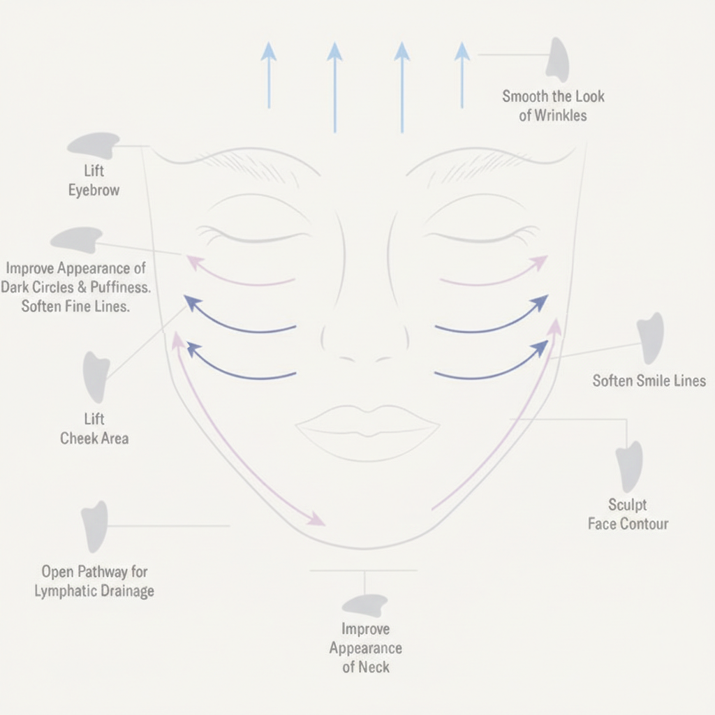 Gua Sha wajah profesional adalah dialog antara tubuh dan jiwa. Ritual bermula dengan "Membuka Titik"—menekan dengan lembut nodus limfa di belakang telinga dan sepanjang leher.