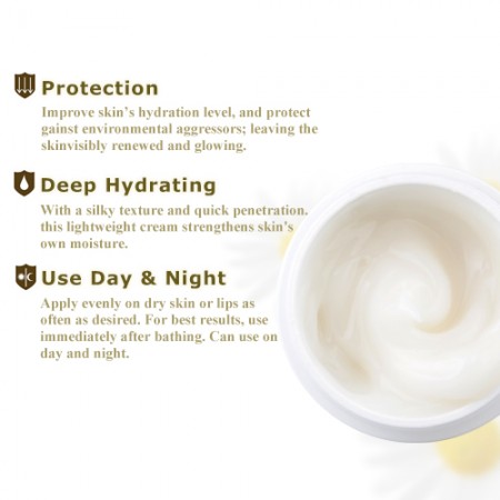 Mentega Shea --- Sebuah humektan semulajadi, boleh diserap dengan mudah oleh kutikula kulit kerana molekulnya yang kecil. Selain itu, ia memberi nutrisi kepada kulit tanpa rasa berminyak.