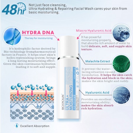 - Hydra DNA --- staat bekend als de sleutel tot hydratatie van de Franse farmaceutische fabriek Javenech. Het helpt de huid een rijke hoeveelheid water aan te vullen voor een langdurige hydratatie, zachte en elastische huidtextuur.