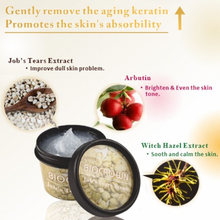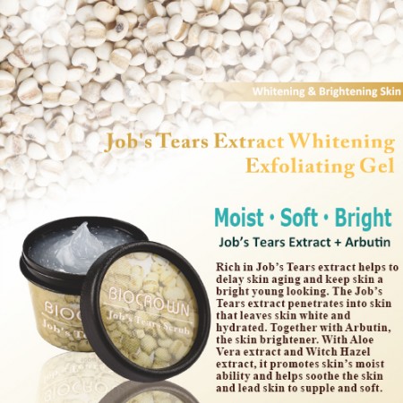 O Gel Esfoliante Iluminador com Extrato de Lágrimas de Jóbi é infundido com extrato de Lágrimas de Jóbi, que ajuda a retardar o envelhecimento da pele e promove uma aparência jovem. Também contém arbutina para aumentar a luminosidade e alcançar um tom de pele uniforme.