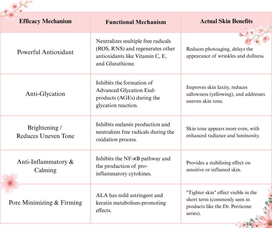 7. Ang Alpha-lipoic acid ay pumapasok ng malalim sa tisyu ng balat at pinabilis ang produksyon ng collagen, na nagpapabuti sa elasticity at katatagan ng balat.