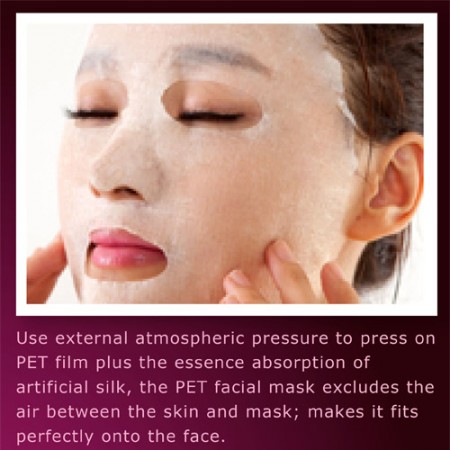 1. Công nghệ kết hợp đổi mới: Màng PET được kết nối liền mạch với các tấm không dệt, giúp mặt nạ vừa vặn hoàn hảo trên da.