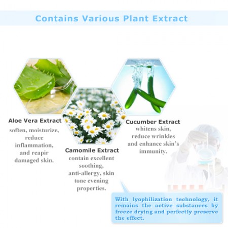 - Chiết xuất dưa leo: Chiết xuất từ dưa leo, giàu chất chiết xuất thực vật và vitamin C, chiết xuất này nhẹ nhàng với da với độ pH 6. Mang lại cho da một kết cấu mịn màng, trẻ trung trong khi cung cấp độ ẩm và làm dịu da bị cháy nắng. Dưỡng ẩm da và thúc đẩy sự đồng đều hơn của màu da.
