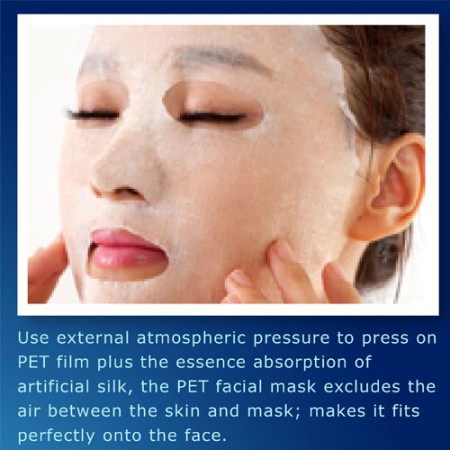 1. Công nghệ kết hợp đổi mới: Màng PET được kết nối liền mạch với các tấm không dệt, giúp mặt nạ vừa vặn hoàn hảo trên da.