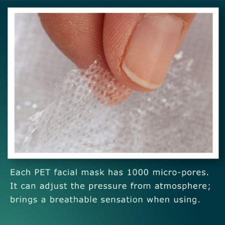 4. Thiết kế vi lỗ: Mỗi mặt nạ PET có 1000 vi lỗ. Nó có thể điều chỉnh áp lực từ môi trường, giúp nó có khả năng thở.