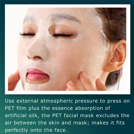 1. Công nghệ kết hợp đổi mới: Màng PET được kết nối liền mạch với các tấm không dệt, giúp mặt nạ vừa vặn hoàn hảo trên da.