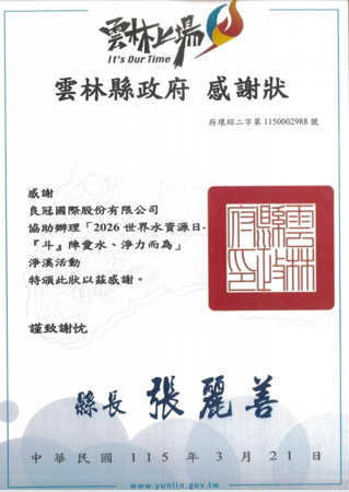 此次獲得的感謝狀,是肯定,更是一份持續前進的動力。它提醒我們,在追求卓越的同時,也要持續關注環境議題,將永續精神融入每一個決策與行動之中。