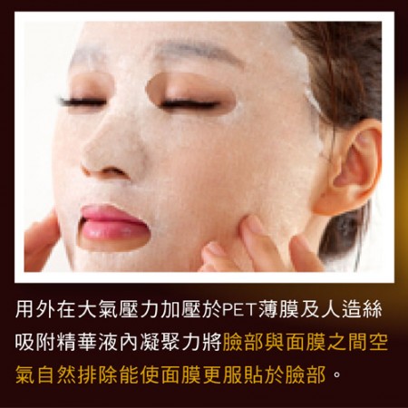 - 1.熱融合加壓技術 ▶▶ 將PET超導薄膜以熱融合加壓模式結合於人造絲纖維布,採無縫接連讓面膜合貼肌膚。